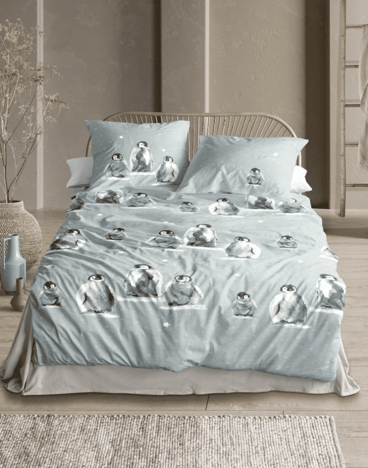 Die Irisette Pinguin Bettwäsche ist die perfekte Antwort für alle, die eine warme und zugleich verspielte Winterbettwäsche suchen. Die 100% reine Baumwolle ist besonders dicht und aufgeraut, was eine hervorragende Wärmespeicherfähigkeit garantiert.