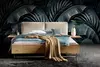 Das Bett bietet Ihnen die Wahl zwischen einem dicken Polsterkopfteil in verschiedenen Farben oder einer Auswahl an zahlreichen anderen Kopfteilvarianten in Holz oder Polster. Diese Flexibilität ermöglicht es Ihnen, das Bett perfekt an Ihre individuellen Vorlieben und Ihr Schlafzimmerdekor anzupassen.